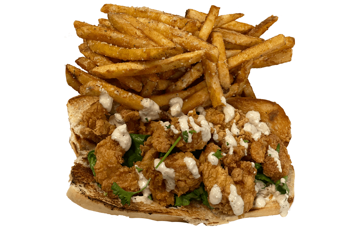 Bo Boy Sandwich Fresh hand battered shrimp, tender salmon, lettuce, tomato and bo's sauce.